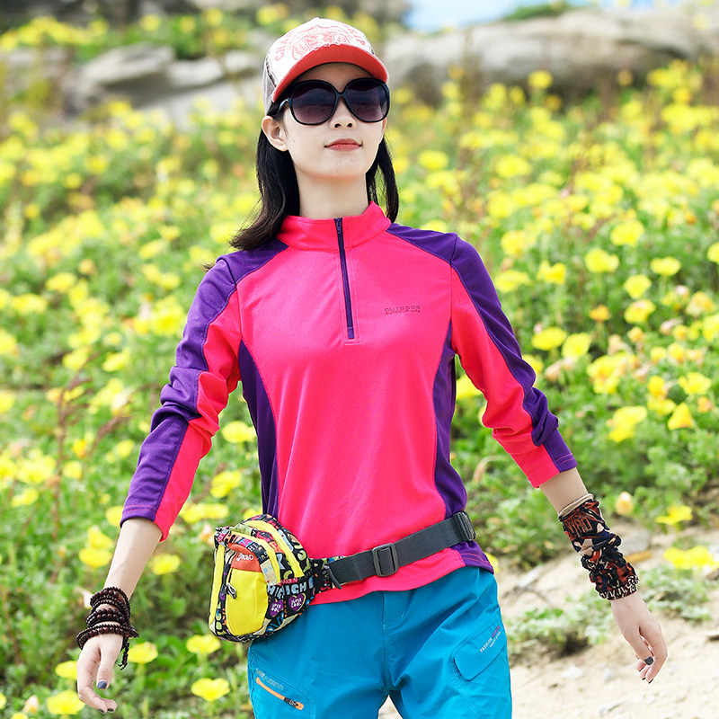 Outdoor sport new elastic speed dry coat woman long sleeve T-shirt breathable sunscreen with long sleeves suction sweat hiking