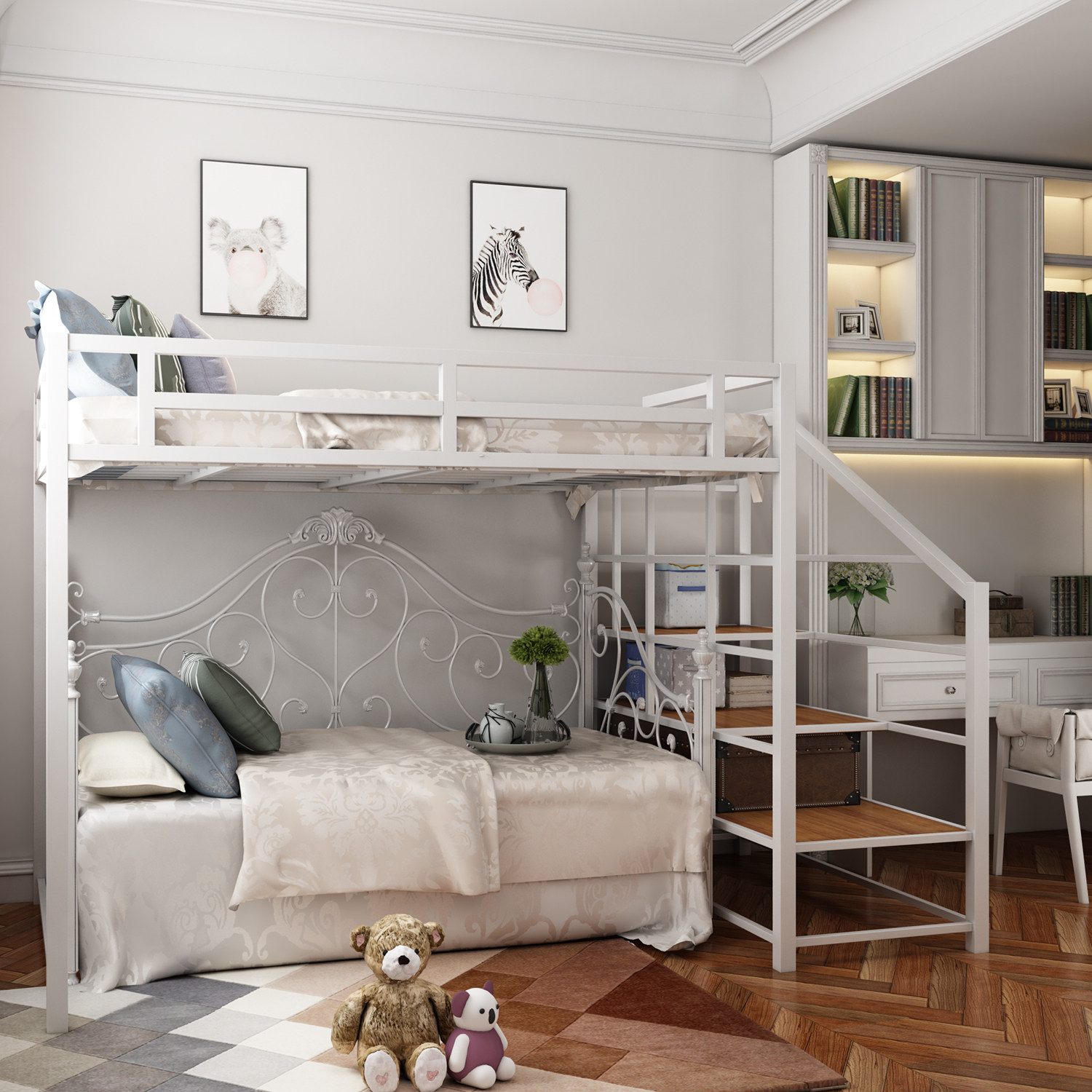 Xin Lihao wrought iron bed raised bed bunk bed small apartment high and low simple dormitory multi-functional bed under the table