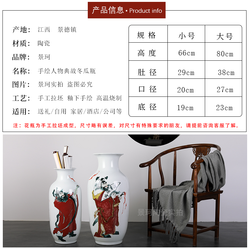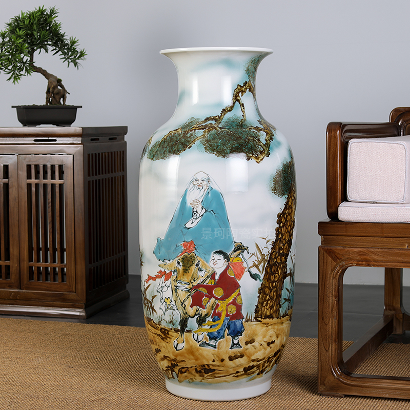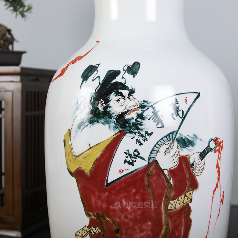 Jingdezhen Ceramic Ware Hand-painted Figure Painting And Calligraphy Cylinder Scroll Cylinder Living Room Home Flower Arrangement Floor Vase Decoration Pendulum