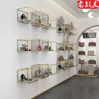 Shoe shop shoe rack upper wall display rack clothing store background wall decoration rack window rack Wall bag shoe shelf