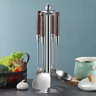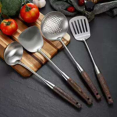 Chicken wing wood kitchenware 304 stainless steel spatula set Full set of household spatula cooking spoon Soup spoon colander frying spatula