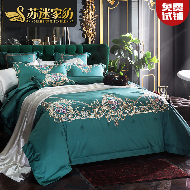 Autumn New products Chinese style Flower minimalist Embroidery Bed bedding Advanced villa 80 long suede cotton All cotton Four sets