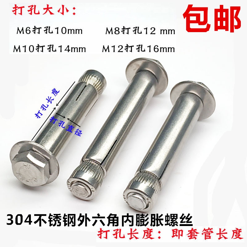 304 201 stainless steel internal expansion screw M6 internal expansion screw M8 external hexagon internal expansion screw M10M12
