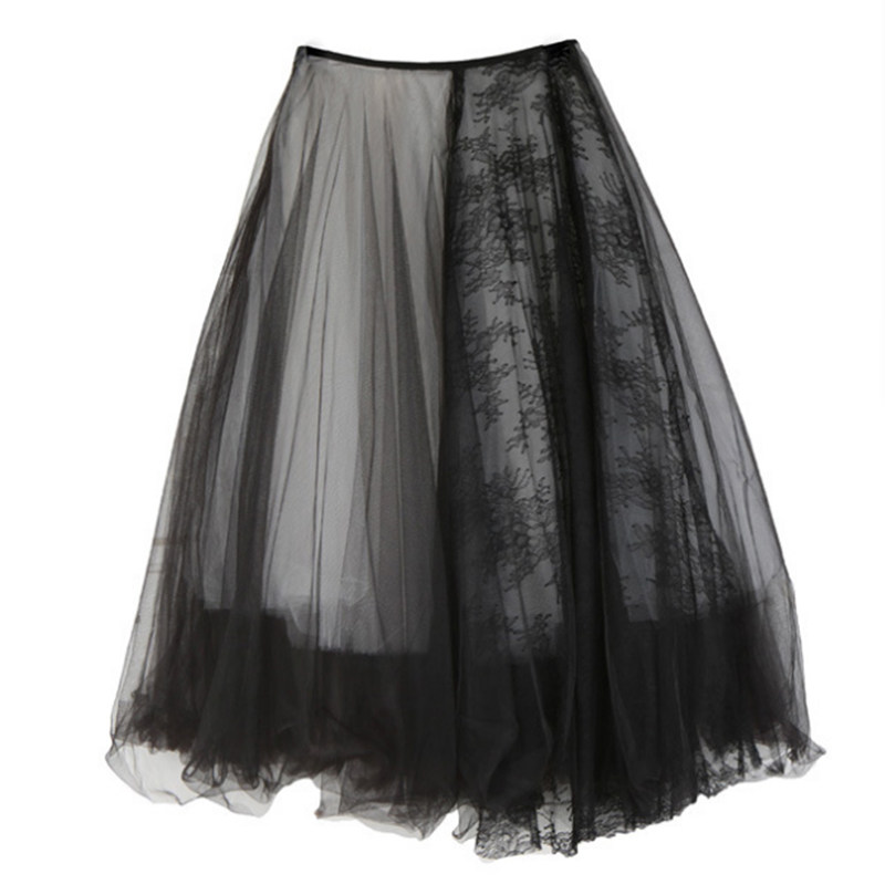 2021 summer dark black high waist lace stitching five layers of black and white contrast mesh skirt Puffy skirt fairy skirt