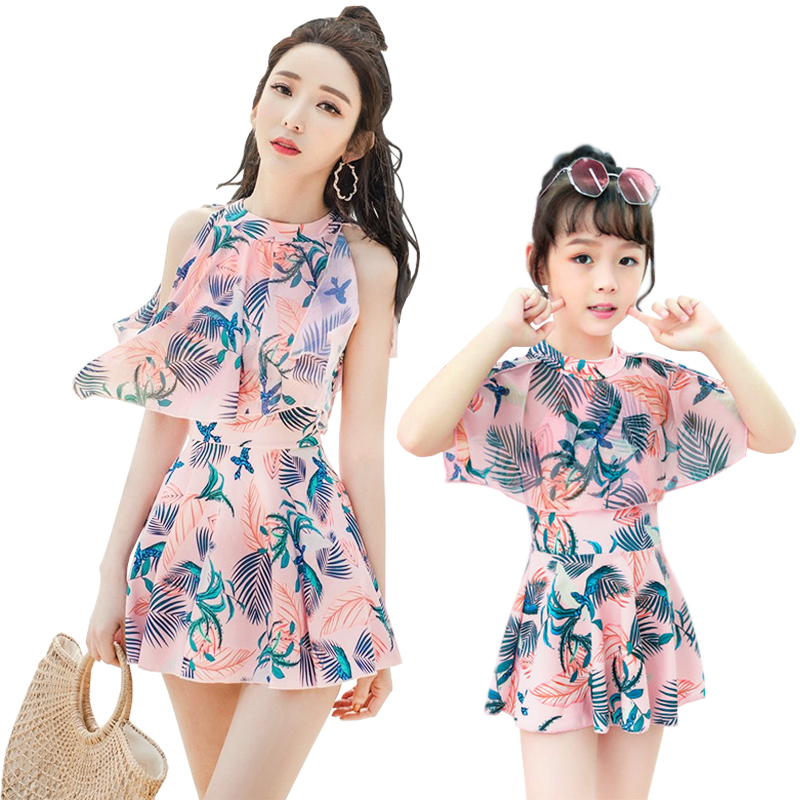 2021 parent-child swimsuit female mother and daughter new belly Princess one-piece dress swimwear hot spring fashion girl swimsuit