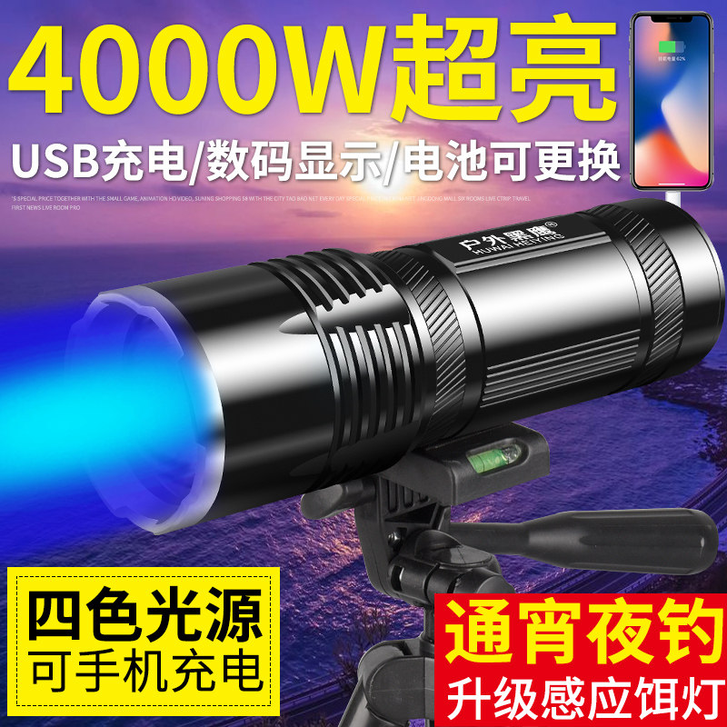 Night fishing light Fishing light strong light blue light flashlight Xenon high-power special super bright fish light Purple table fishing luminous light