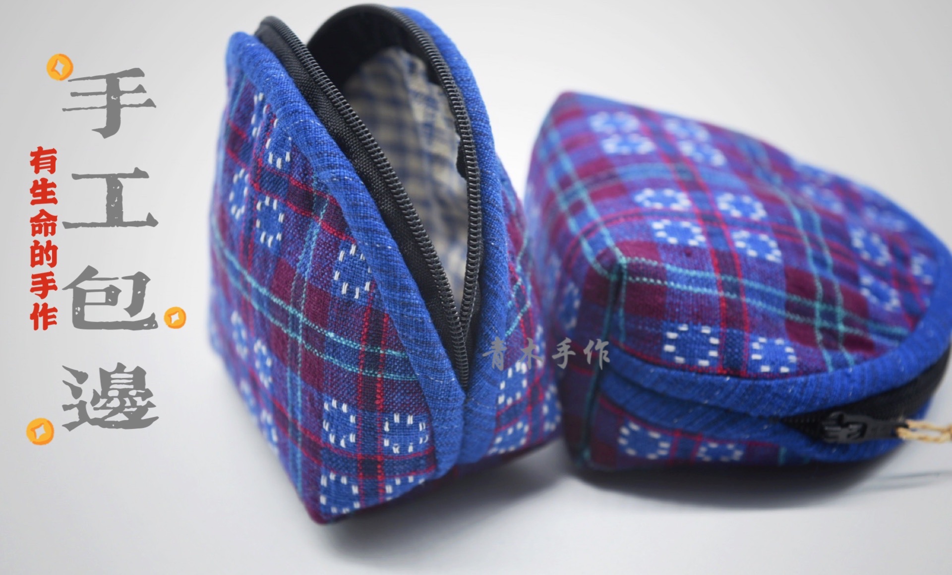 Native cloth old cloth handmade original hi word blue print wallet coin wallet storage bag finished non-material bag shell bag