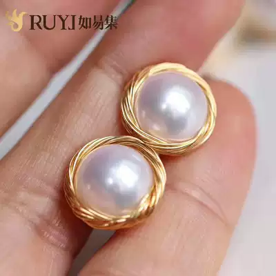 Natural pearl earrings female temperament versatile small sterling silver earrings anti-allergic bird nest earrings retro simple earrings