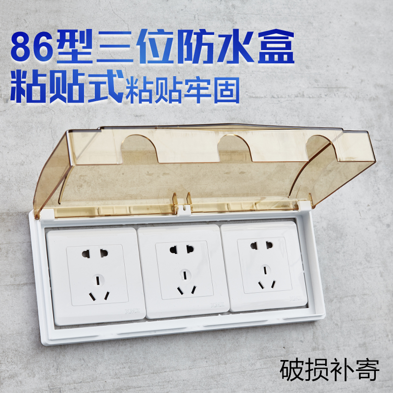 Three-position triple socket waterproof box sticky tea color kitchen switch socket waterproof oil smoke protective cover cover