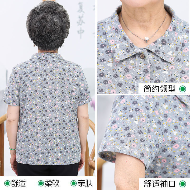 Mother Summer Clothing Shirt Mid-Aged Female Cotton Short Sleeve Dress T-shirt Elderly Clothes Mrs. Suit Full Cotton Shirt
