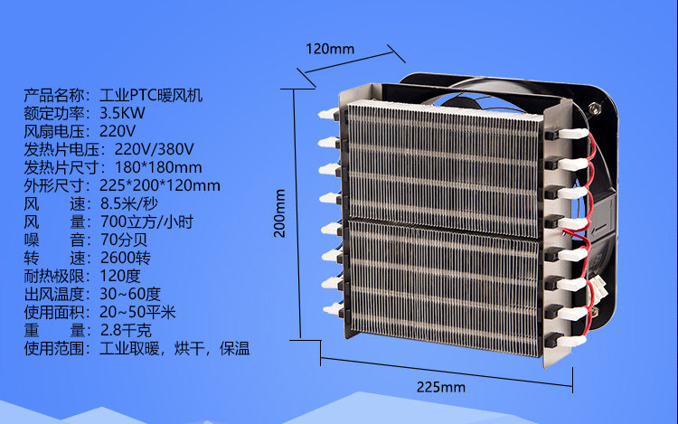 PTC heater Hot fan Ceramic industrial heating dryer Air drying heating workshop greenhouse heating electric auxiliary heat