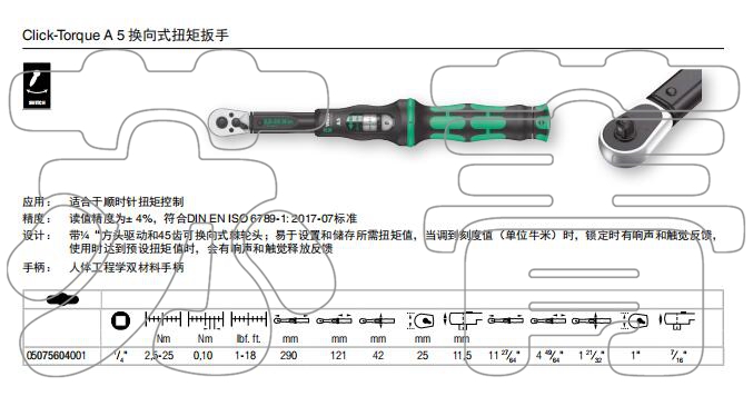Germany Wera Vera Click-Torque A5 2 5-25Nm reversing ratchet torque wrench 1 4