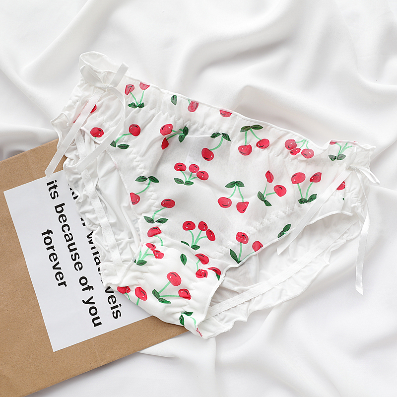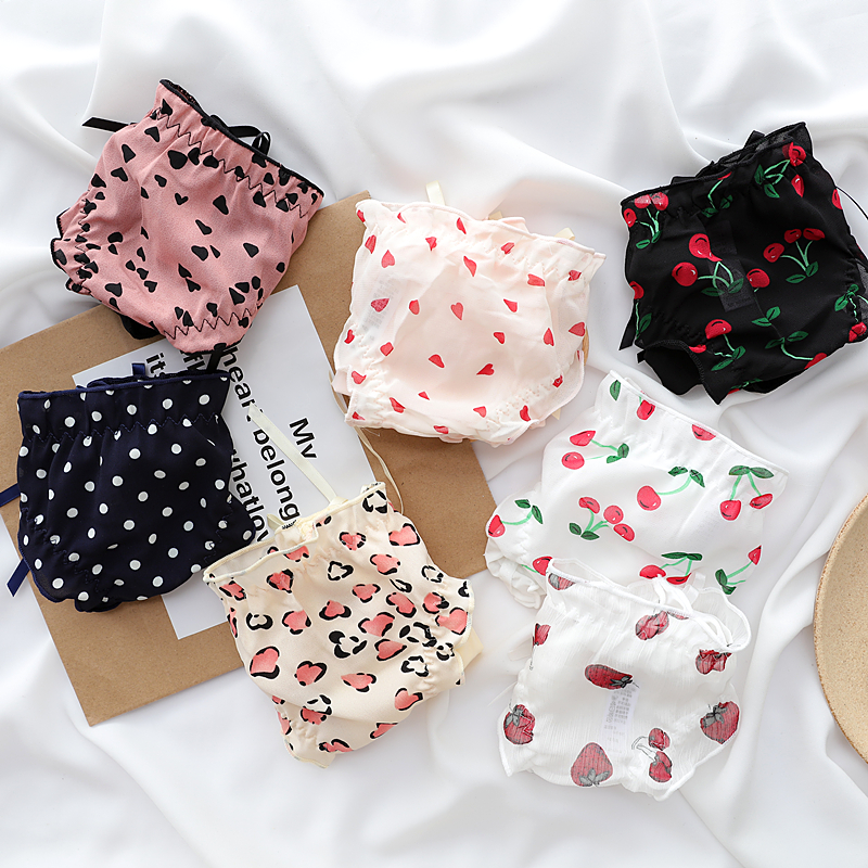 Full of 3 cute sweetheart ice silk printed hip low waist women's underwear mesh cute women's underwear B13#