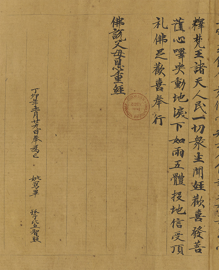 Dunhuang writing scriptures P 2285 Buddha said parents' kindness and heavy scriptures manuscript calligraphy authentic copy copying decorative calligraphy and painting