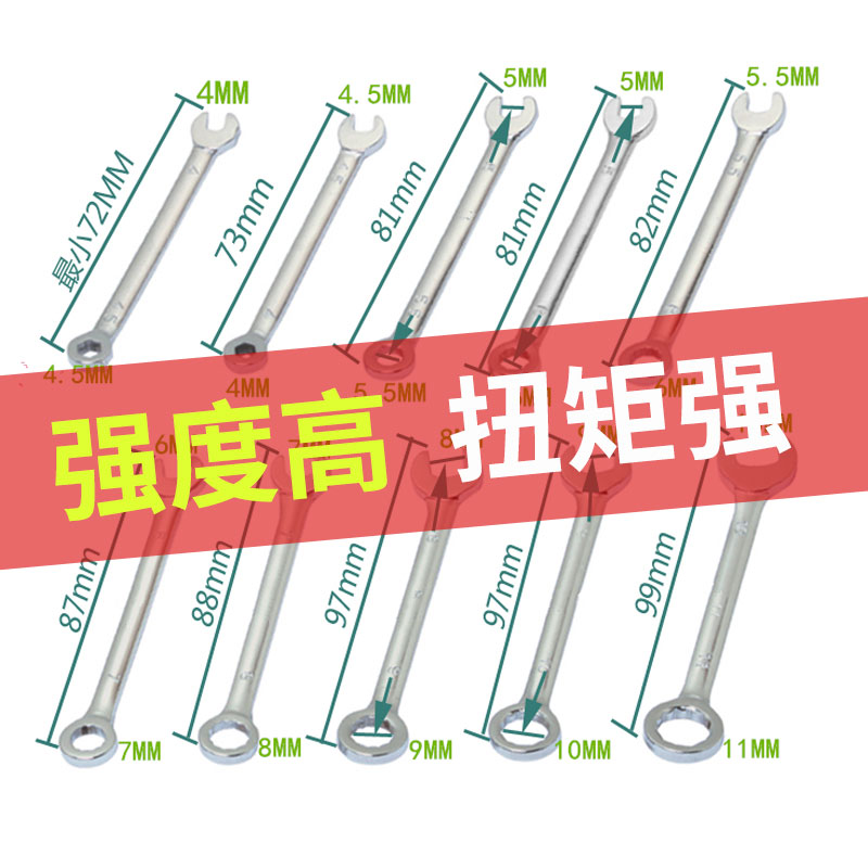 Small mini miniature ultra-thin 10-piece set plum open dual-use wrench 4 4 5 5 6 7 8 9 11mm