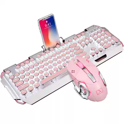 E-sports girl Classic version white powder color blue axis set E-sports girl Classic version White blue color pair Green shaft set punk round key cap pink white light-green shaft plating punk version pink keyboard mouse set electroplating chocolate version powder