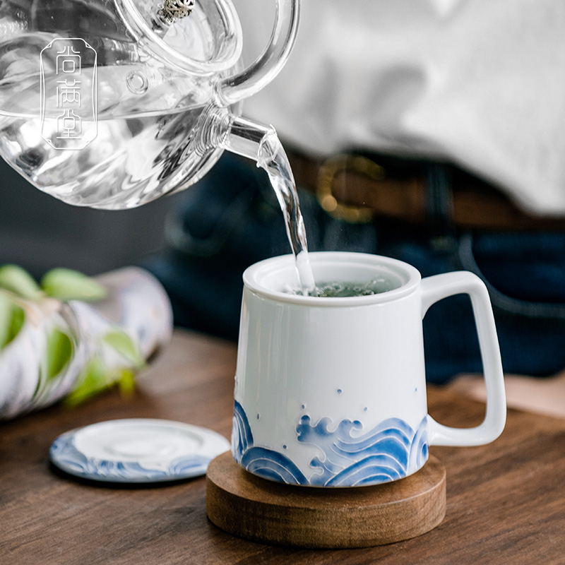 Shang Mantang Jingtao Tea cup Office Teacup Ceramic filter mug with lid Tea water separation Drink teacup