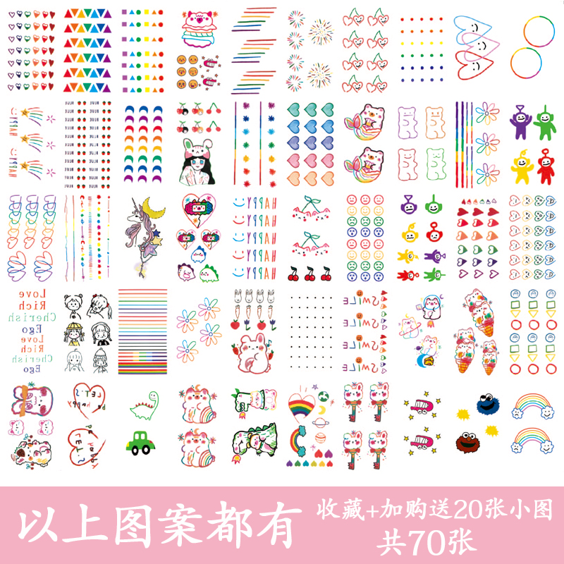 70 sheets of Hyuna's same style tattoo stickers waterproof women's long-lasting Korean net red small fresh ins style cartoon colorful smiling face