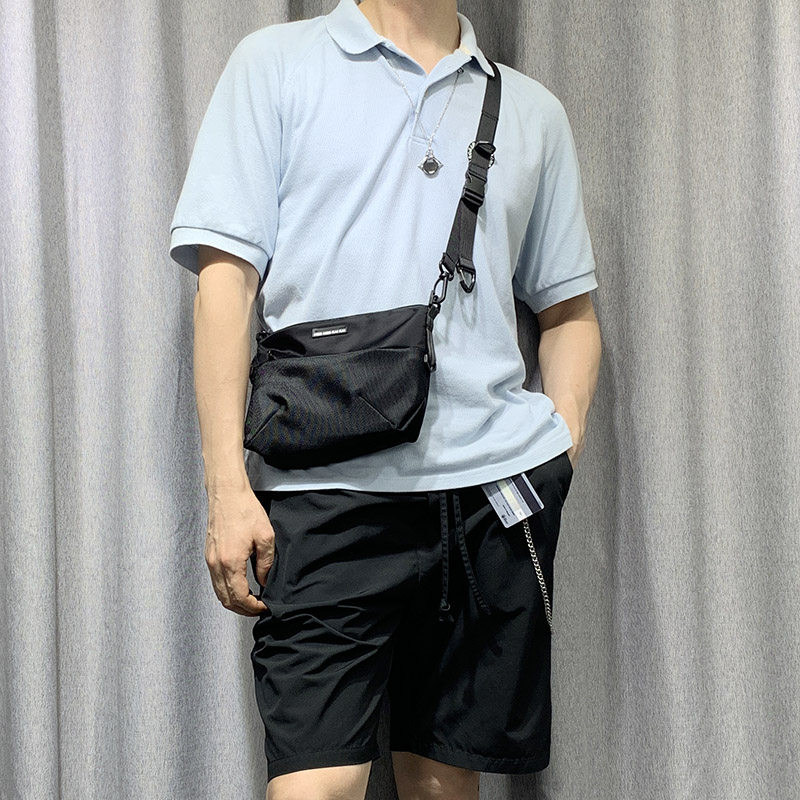 MEDKAI homemade nylon cloth lightweight messenger bag Japanese street trend simple dark black one-shoulder small bag casual messenger bag