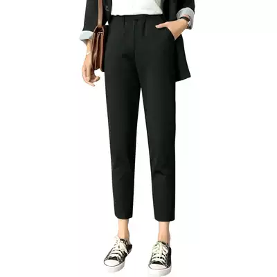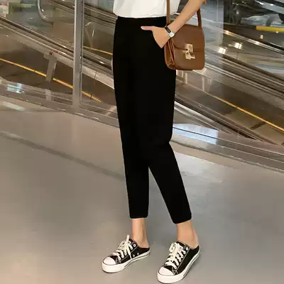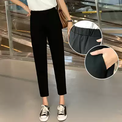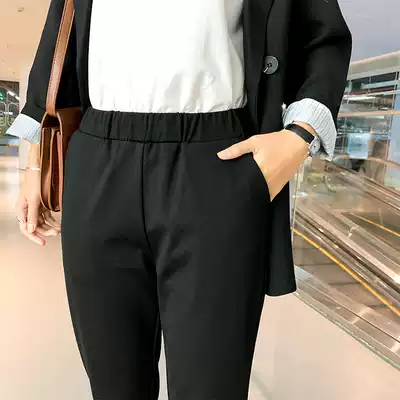 2021 summer thin black straight nine-point trousers women's elastic waist professional suit pants women's work pants