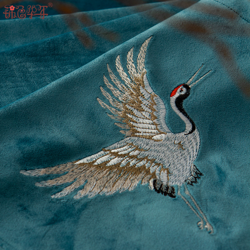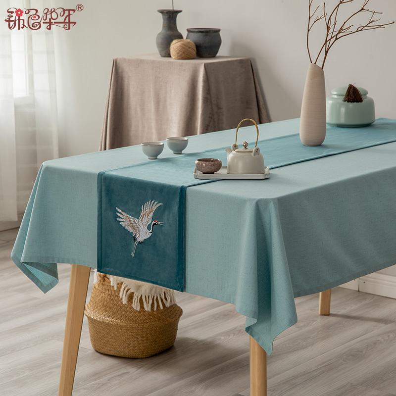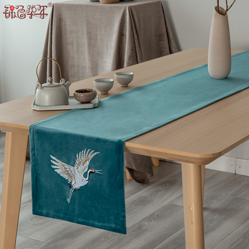 New Chinese-style suede fabric tea table crane embroidery table flag Japanese-style embroidery dry tea flag coffee table TV cabinet cover cloth