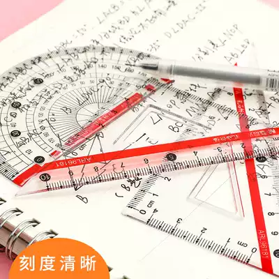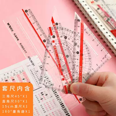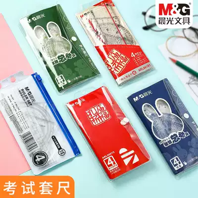 Chenguang stationery ruler drawing four-piece set of primary and secondary school students aluminum alloy triangle protractor test ruler set Japanese and Korean simple cute cartoon children's first grade multifunctional painting ruler