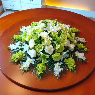 Simulation table flower fresh green rose wedding main table fake flower hotel electric turntable table desktop decoration flower arrangement