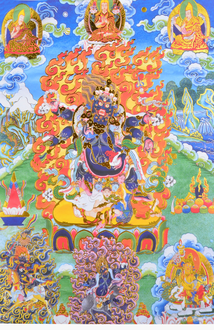 Six-armed Maharaga thangka portrait living room entrance exquisite Tibetan tantric Buddha statue hanging picture