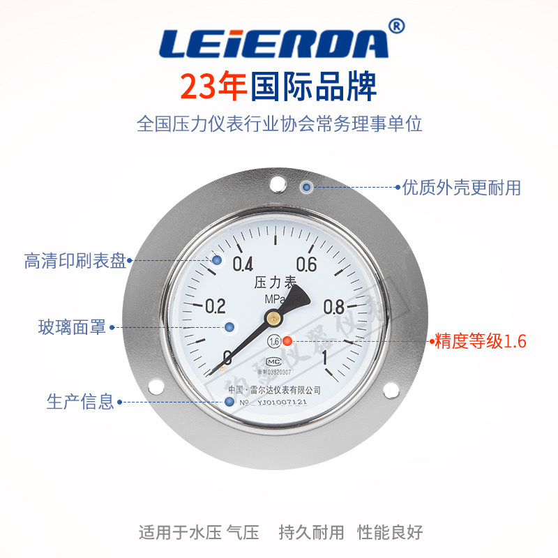 Y-100ZT axial belt front side pressure gauge vacuum water pressure gauge 0-1 6mpa 2 5 -0 1-0mpa-Taobao
