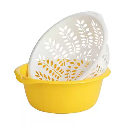 Camellia kitchen washing basket plastic fruit basin double layer drainage basket leaking fruit and vegetable basket pot drip screen