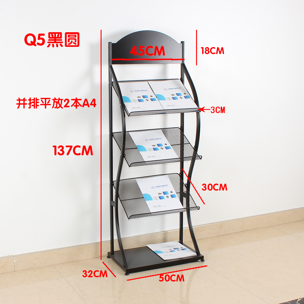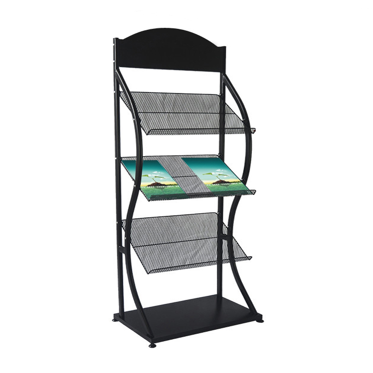 Single page color page storage floor newspaper rack Metal mesh basket Magazine storage shelf Pulley mobile book and newspaper rack storage rack