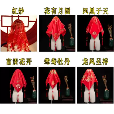 Bride Chinese red hijab embroidery wedding tassel Xiuhe clothing hijab Dragon Phoenix headscarf knot wedding wedding supplies