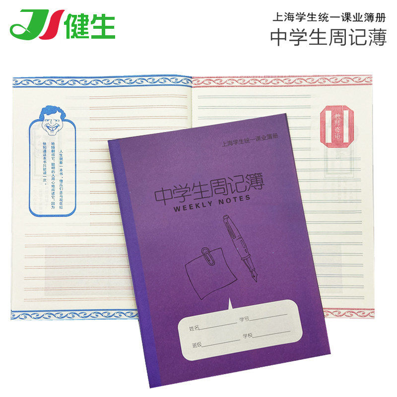 Jiansheng homework book K23-1 small primary school student weekly book Shanghai students unified school book K108-1 large Middle school student weekly book diary notepad can be customized logo