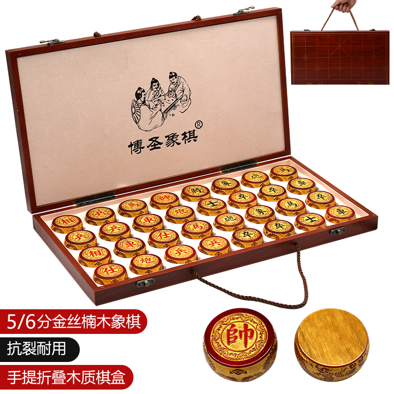 Golden Silk Nanmu Wood Chess China Solid Wood Small Leaf Zhen Red Wood Kowloon Upscale Large Scale Folding Chessboard Adult Suit