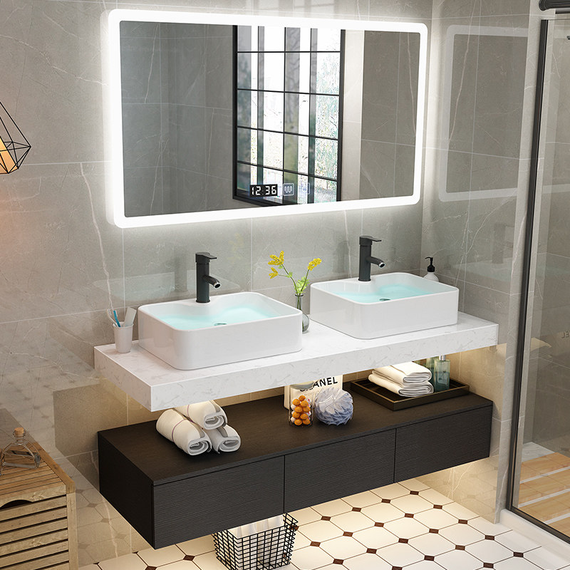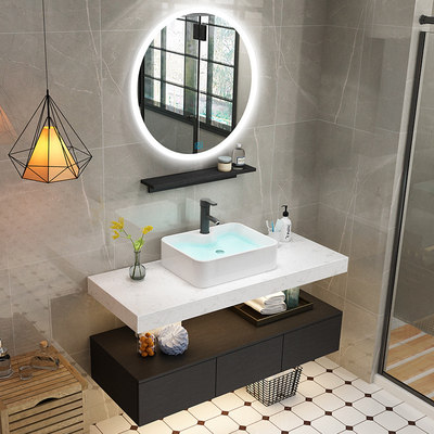 Nordic Hanging Wall Style Marble Bath Cabinet Makeup Room Washbasin Bath Cabinet Combination Makeup Dressing Room Wash table surface basin