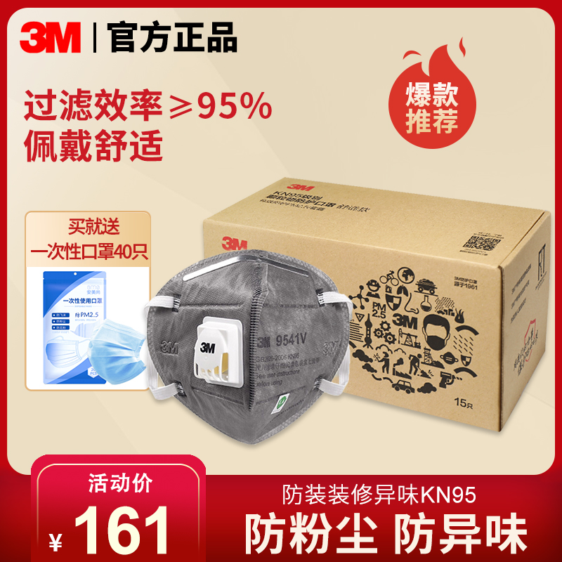 3M 9541V mask KN95 grade activated carbon suction valve haze dust odor decoration e-commerce version 15 packs