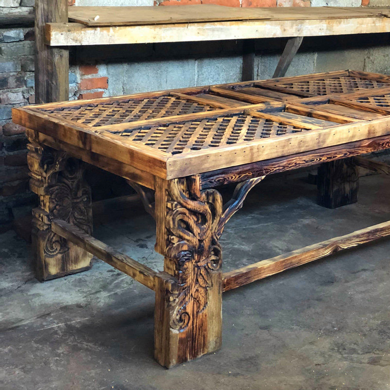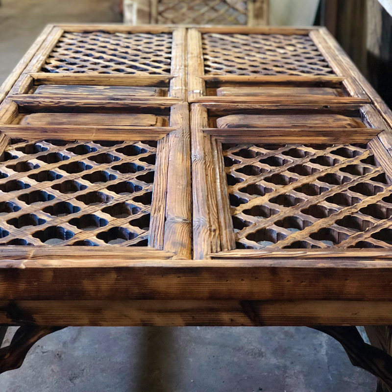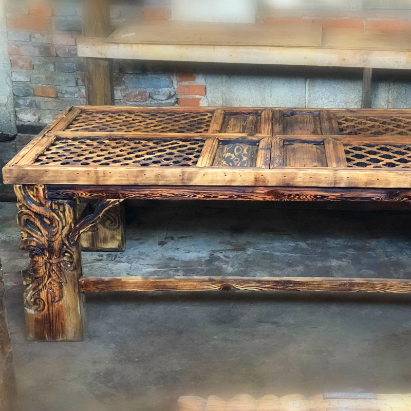 Solid wood doors and windows tea table Chinese Zen coffee table living room log old carved craft Zen room tea table tea art table