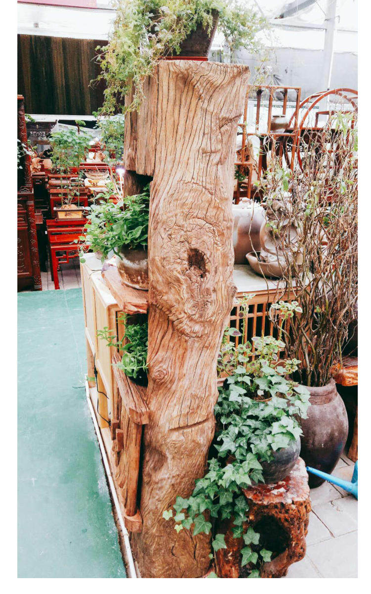 Solid wood bookcase bookshelf indoor log rack Chinese retro folk tea cabinet tea room home special-shaped storage cabinet