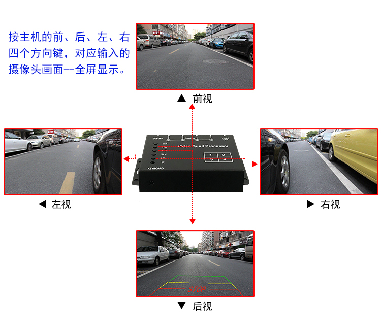 Car four-way screen splitter 422 video processor reversing blind spot camera monitoring split screen device hot sale