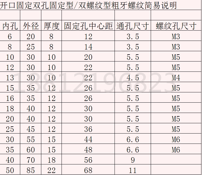 White milk white SCSM6 * 20 * 8 (double through hole) SCSM8 * 25 * 8 (double through hole) SCSM10 * 30 * 10 (double through hole) SCSM12 * 3