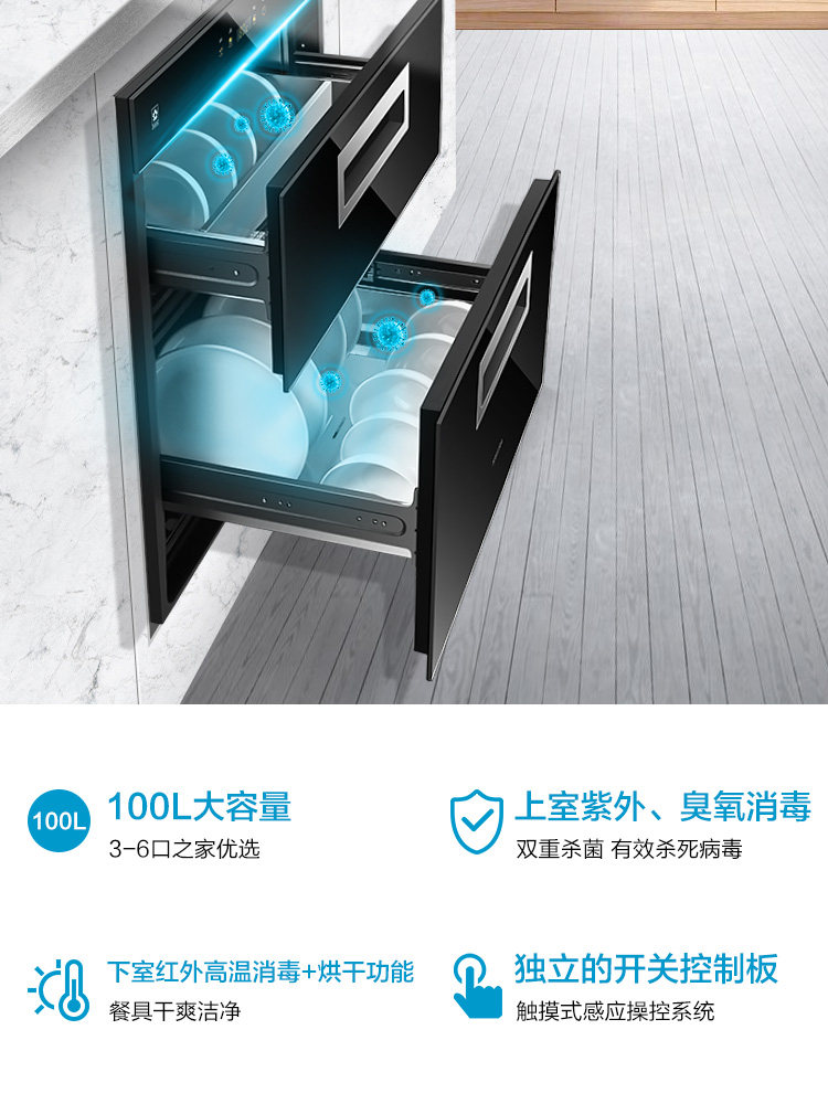 Cherry blossom ZTD100-C01 disinfection cabinet Domestic embedded small double layer large capacity 100L high temperature disinfection bowl cabinet
