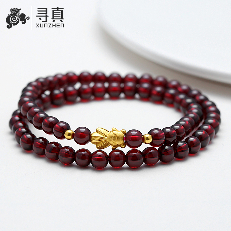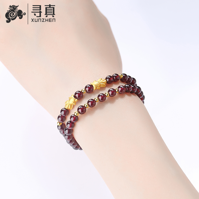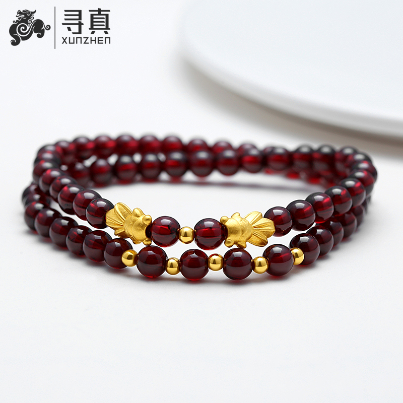 999 pure gold goldfish 24K gold bracelet women with garnet 3d hard gold transfer Zhulu Lutong natal year pure gold