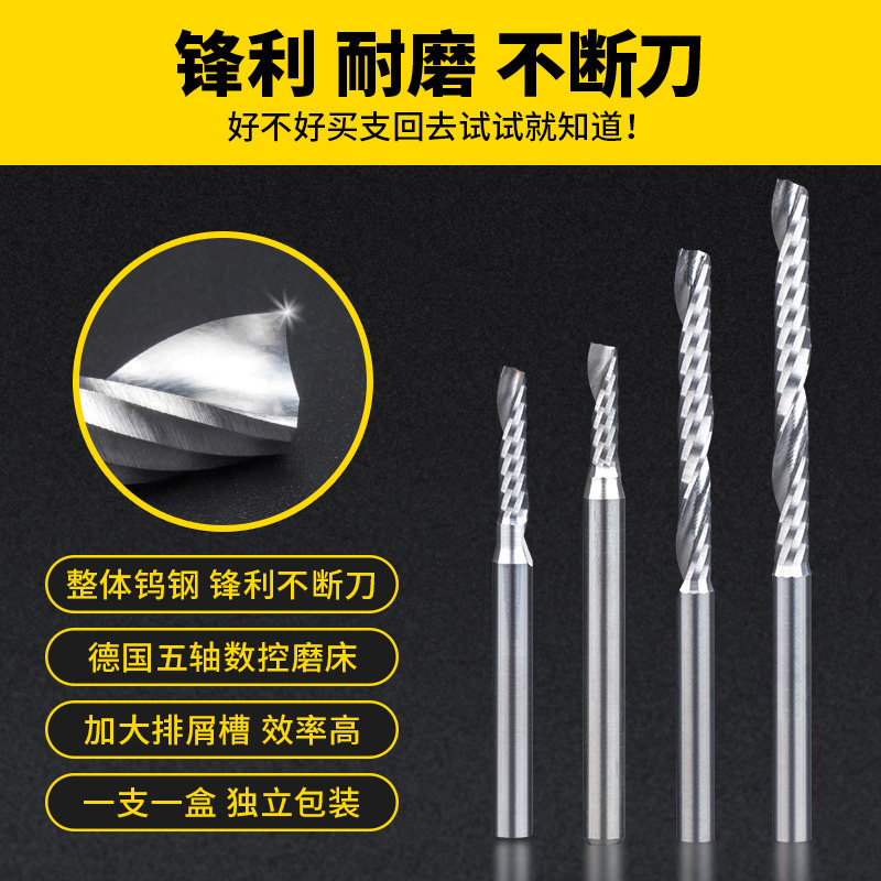 Huhao 3 175 single-edged spiral milling cutter PVC acrylic plastic plate CNC cutting imported material engraving machine tool
