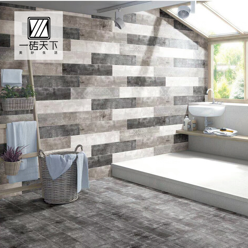 Painter wood grain brick printed wood grain strips coffee hall milk tea shop dining room anti-slip floor tiles imitation wood floor brick 150800