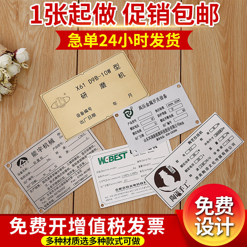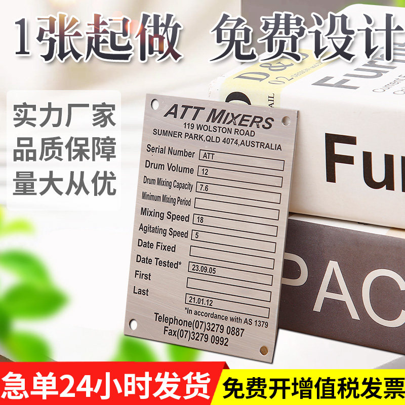 Customized machine equipment aluminum sign Custom nameplate corrosion aluminum brand custom stainless steel panel metal bronze plate production