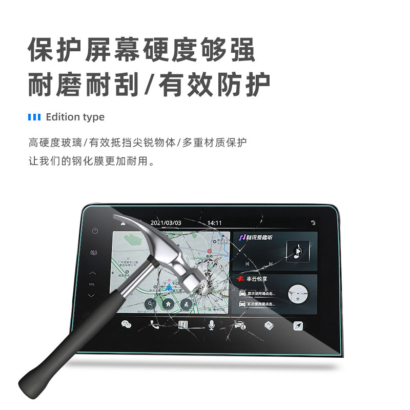 Dedicated 21-22 ToyotaCAMRY navigation tempered film central control display screen anti-collision strip film modified interior