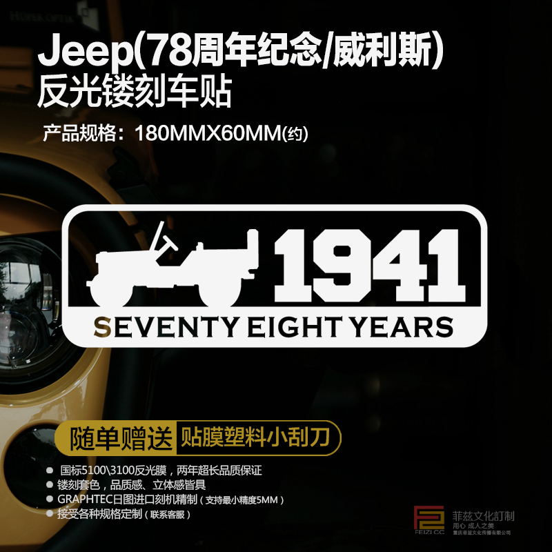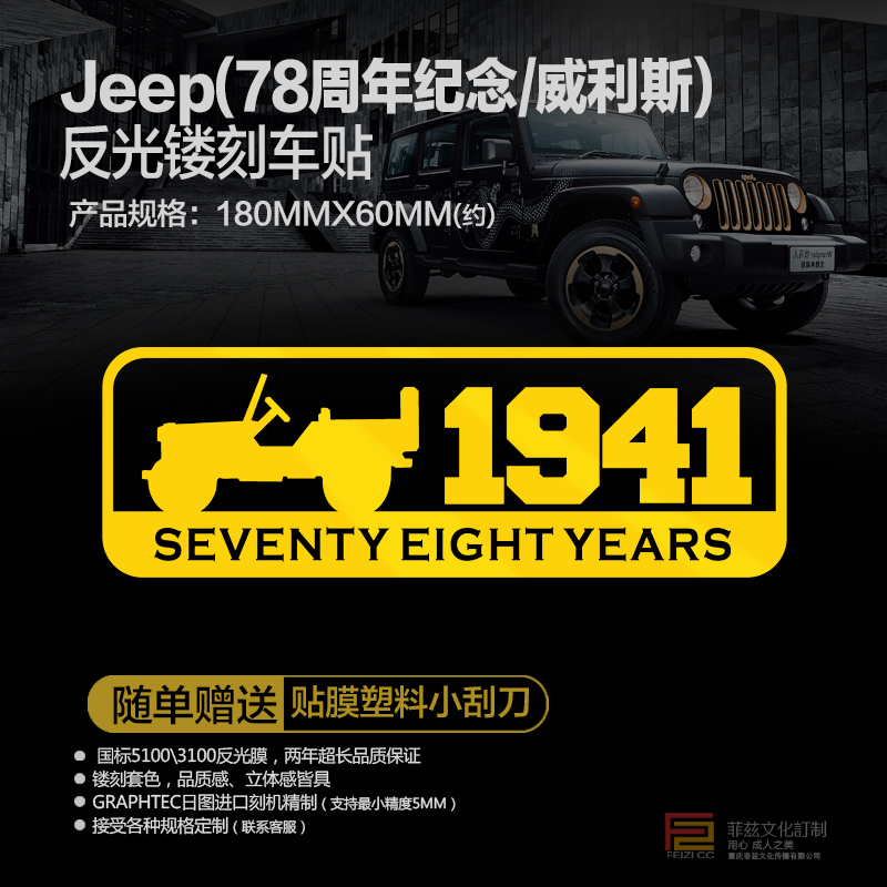 jeep jeep Wrangler Willis (78th Anniversary) Reflective Carved Car Sticker
