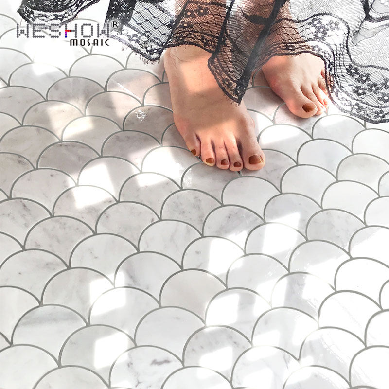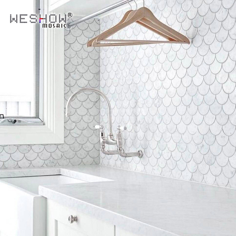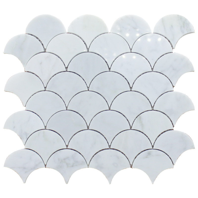 Natural marble powder room fan-shaped fish scale mosaic white stone background wall Kitchen bar dragon scale tile