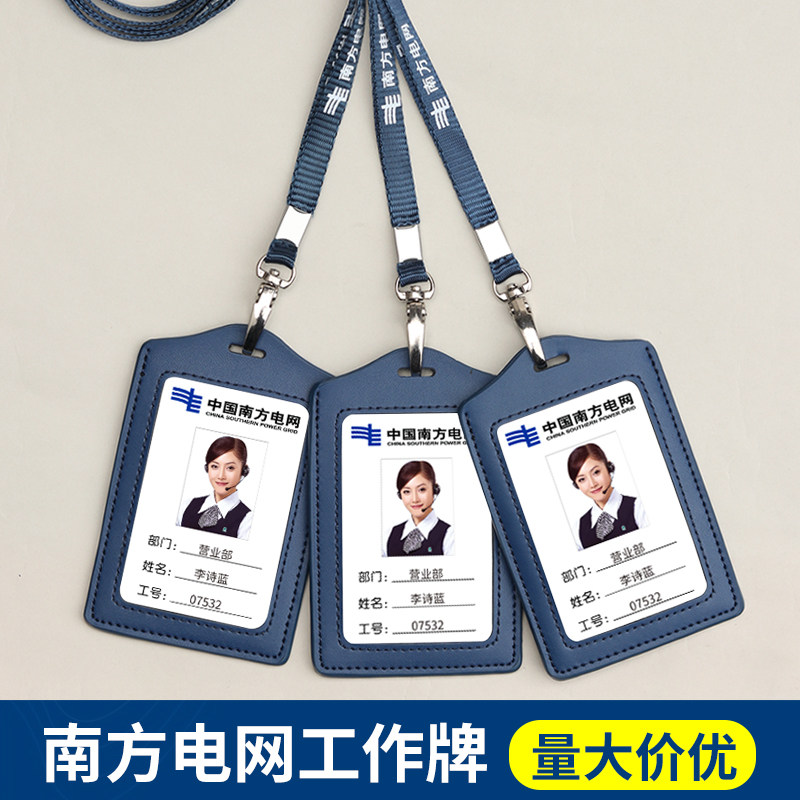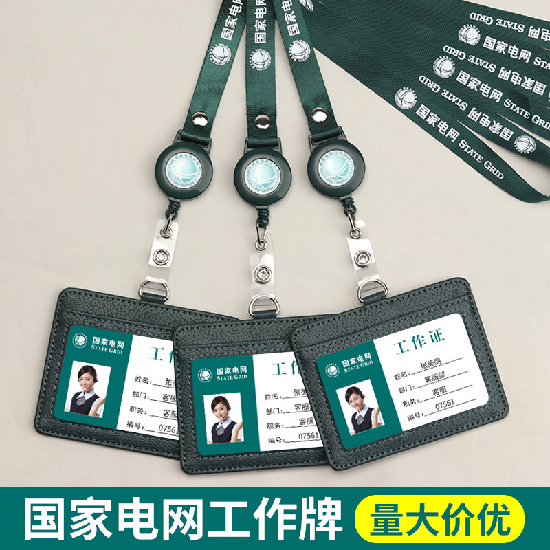National Grid Work Permit Pitjacket Southern Power Grid Work Card Card Sleeve Documents Cover with hanging rope Custom State Grid Employees' Badge Chest Card Entrance access Chest Card Cover Genuine Leather card Piccard sleeve