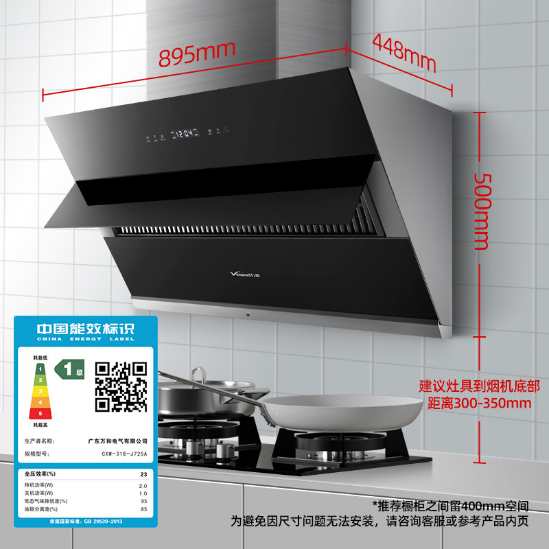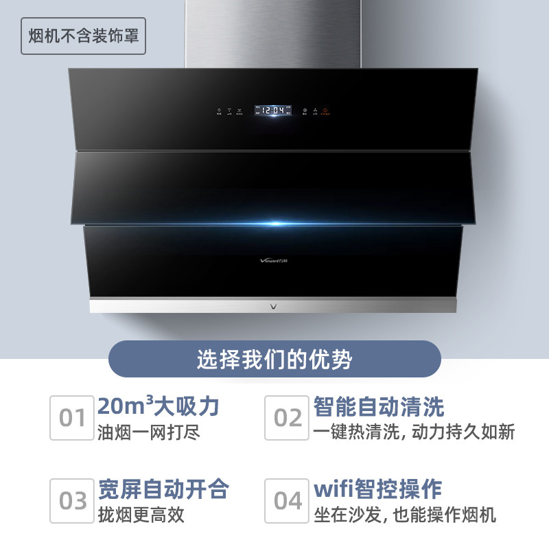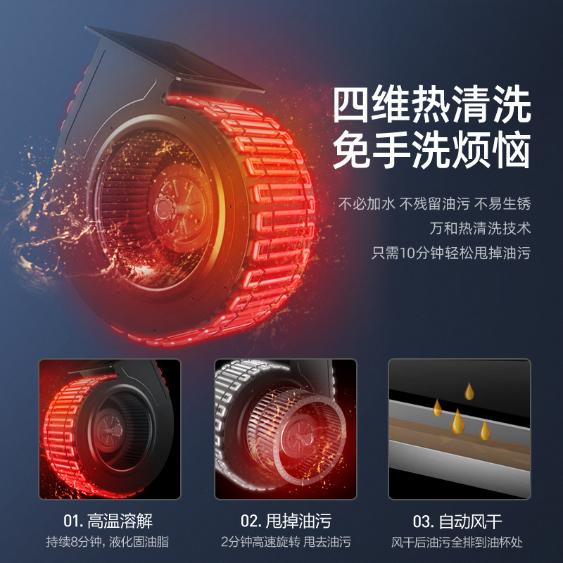 Wanhe range hood Household small side suction kitchen large suction force automatic cleaning wall mount range hood